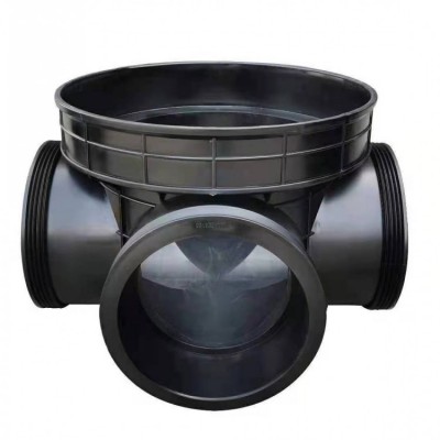 產品規格尺寸分為D450(井座直徑450mm),D700,D1000,D1200和D1500,每種尺寸的井座可分為起始井、直通井,三通井和異形井等,支管大小根據外接排水管材大小而定, 但不得大于井座尺寸減200mm,井的高度一般不高于1800mm。