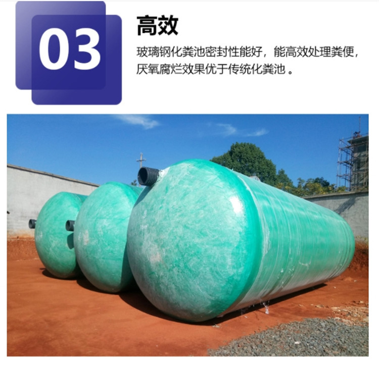 2、密封性好,不滲漏,徹底防止傳統(tǒng)化糞池地下水滲漏所產(chǎn)生的污染。同時改善地基濕軟下沉對建筑的危害,具有較好的環(huán)保效益。