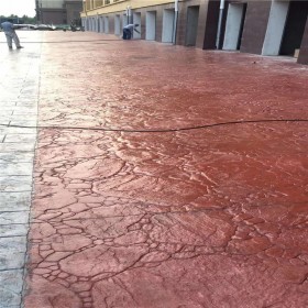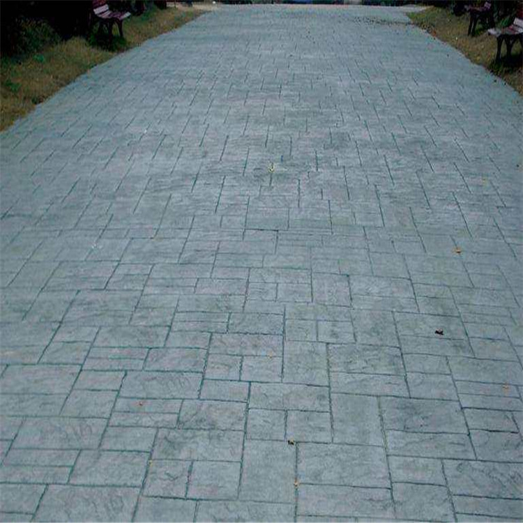 5、使用藝術地坪模具對地坪面層進行紋理處理。藝術地坪模具應配套使用,首先確定好紋理的分布方向,選好一塊模具放置的位置和角度,然后其它的模具依次緊貼一塊模具放置。彩色混凝土藝術地坪壓模采用壓模,壓模應由技術較好的人員進行作業以保證壓紋深度一致和模具放置的準確性。