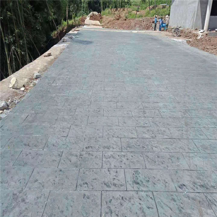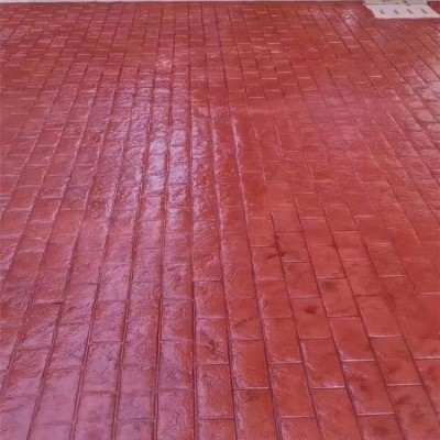 5、使用藝術地坪模具對地坪面層進行紋理處理。藝術地坪模具應配套使用,首先確定好紋理的分布方向,選好一塊模具放置的位置和角度,然后其它的模具依次緊貼一塊模具放置。彩色混凝土藝術地坪壓模采用壓模,壓模應由技術較好的人員進行作業以保證壓紋深度一致和模具放置的準確性。
