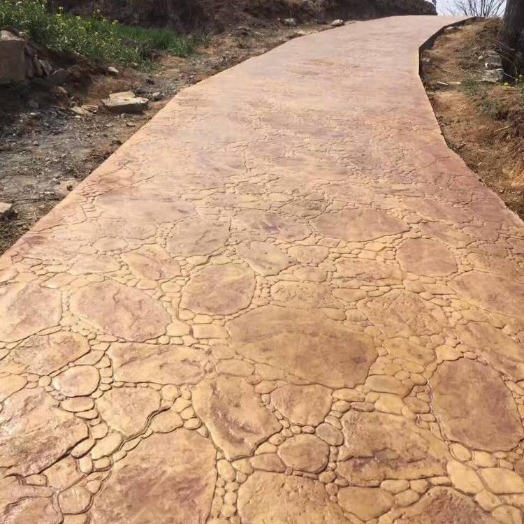 5、使用藝術地坪模具對地坪面層進行紋理處理。藝術地坪模具應配套使用,首先確定好紋理的分布方向,選好一塊模具放置的位置和角度,然后其它的模具依次緊貼一塊模具放置。彩色混凝土藝術地坪壓模采用壓模,壓模應由技術較好的人員進行作業以保證壓紋深度一致和模具放置的準確性。