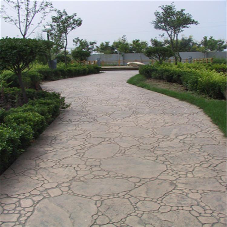 5、使用藝術地坪模具對地坪面層進行紋理處理。藝術地坪模具應配套使用,首先確定好紋理的分布方向,選好一塊模具放置的位置和角度,然后其它的模具依次緊貼一塊模具放置。彩色混凝土藝術地坪壓模采用壓模,壓模應由技術較好的人員進行作業以保證壓紋深度一致和模具放置的準確性。