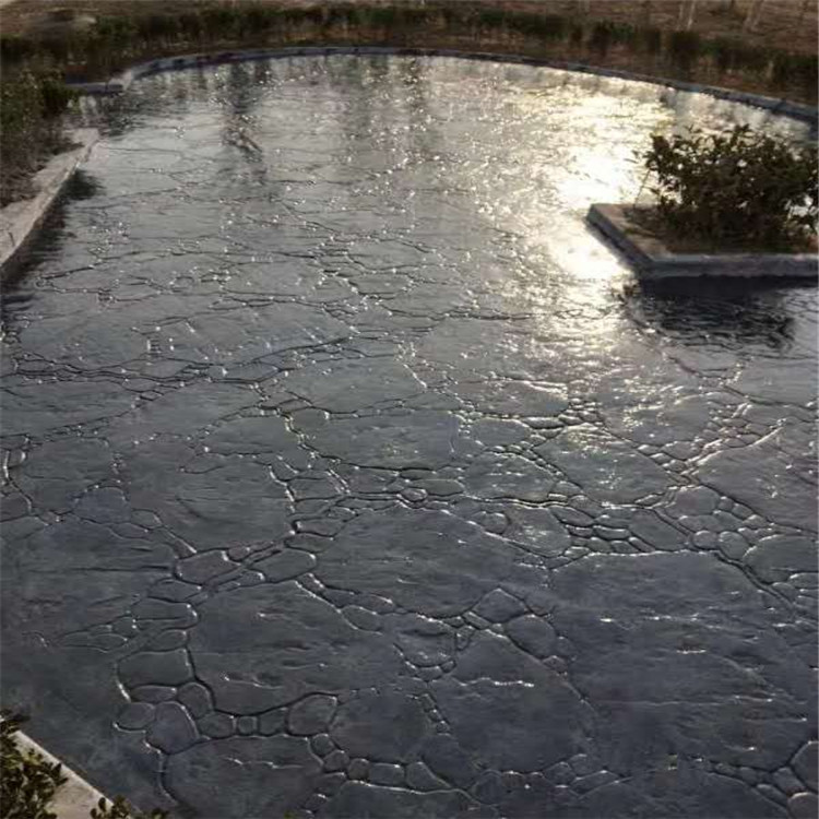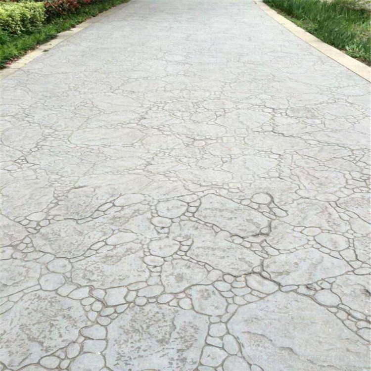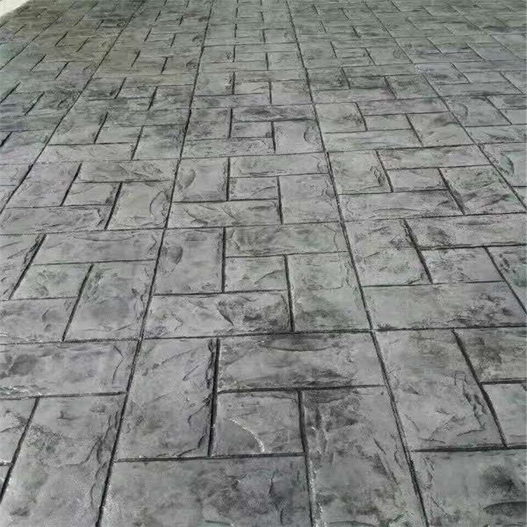 5、使用藝術地坪模具對地坪面層進行紋理處理。藝術地坪模具應配套使用,首先確定好紋理的分布方向,選好一塊模具放置的位置和角度,然后其它的模具依次緊貼一塊模具放置。彩色混凝土藝術地坪壓模采用壓模,壓模應由技術較好的人員進行作業以保證壓紋深度一致和模具放置的準確性。