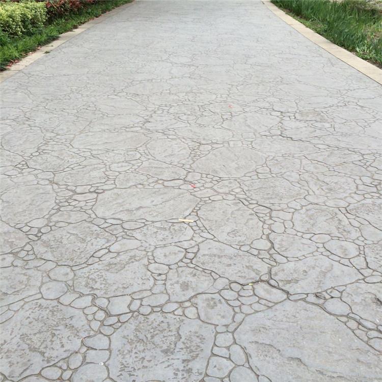 5、使用藝術地坪模具對地坪面層進行紋理處理。藝術地坪模具應配套使用,首先確定好紋理的分布方向,選好一塊模具放置的位置和角度,然后其它的模具依次緊貼一塊模具放置。彩色混凝土藝術地坪壓模采用壓模,壓模應由技術較好的人員進行作業以保證壓紋深度一致和模具放置的準確性。