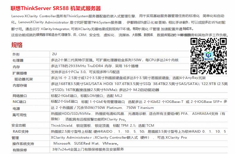 聯(lián)想 Lenovo ThinkServer SR588 機架式服務器