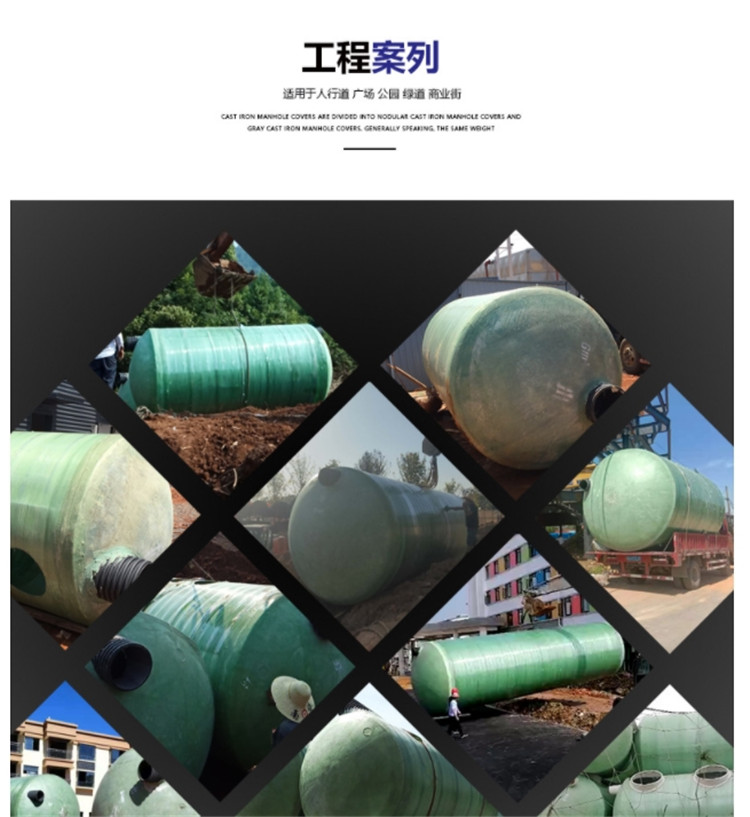 4、產品重量輕,便于運輸。產品整體成形,無需拼裝,安裝快捷。  池體內表面采用膠衣樹脂,保證了優良可靠的密封性,具有強度高、重量輕、耐腐蝕、耐老化、防滲漏的特點.并分別設有出氣孔、進、出料口和水壓間。其池壁厚度為10mm,拉伸強度為108MPa,彎曲強度147MPa,具有很高的機械強度和延伸率,大大超過了水壓