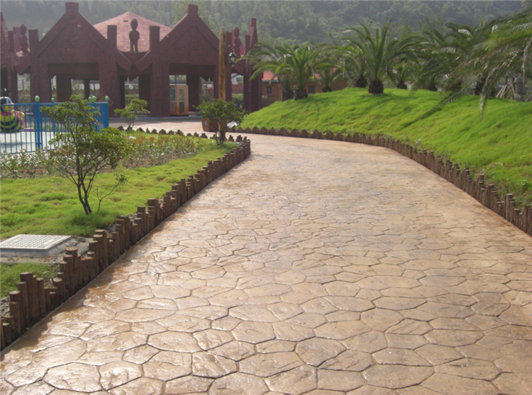 7、理論上對藝術地坪封閉2-3天后進行沖洗,正常情況下為了防止新造路面被污染,工程全部紋理壓印完成后統一進行沖洗。沖洗時不必將脫模粉全部沖洗干凈,應留有10%左右的脫模粉顏色,這樣的藝術地面就會有效果很好的漸變效果。